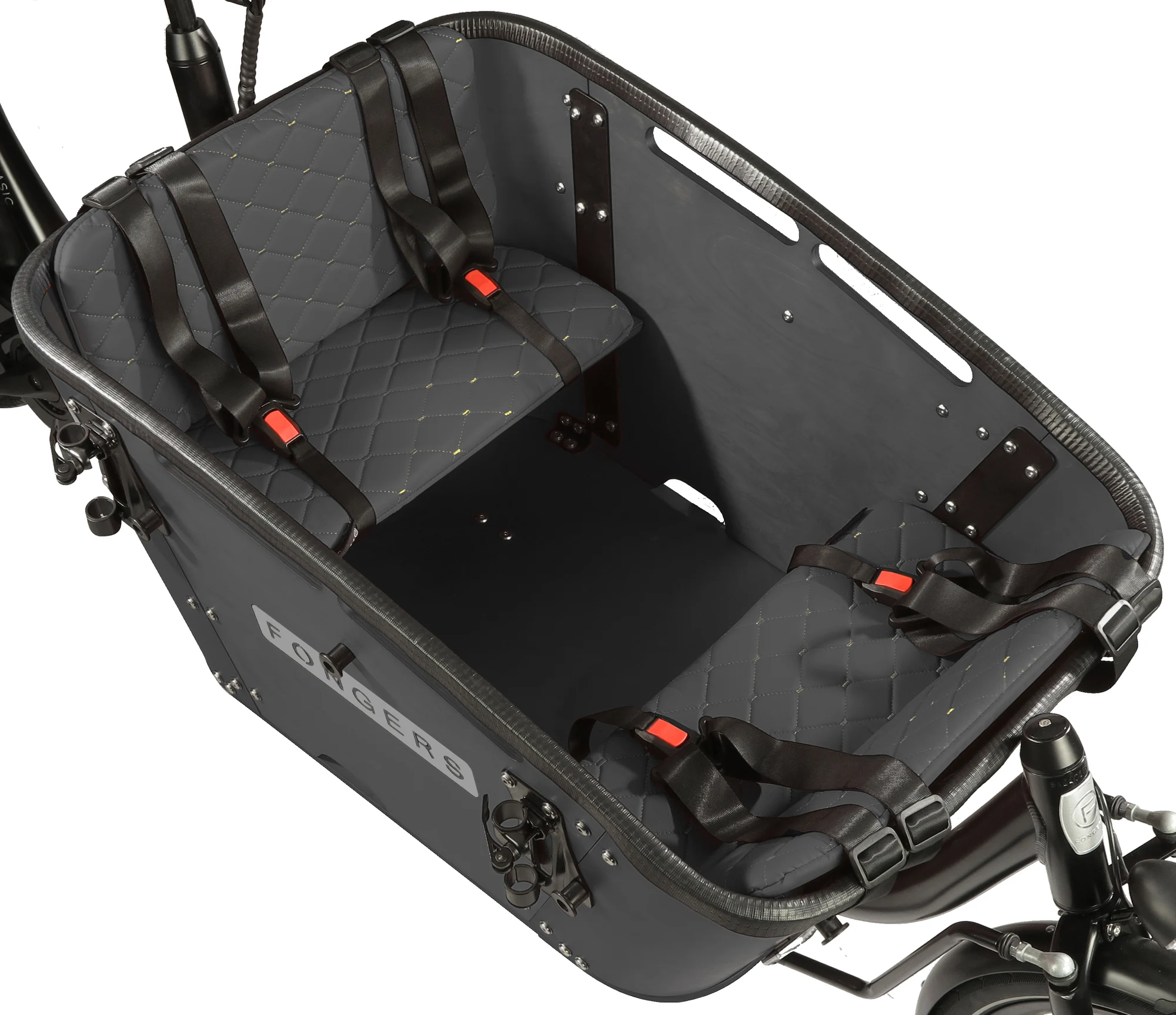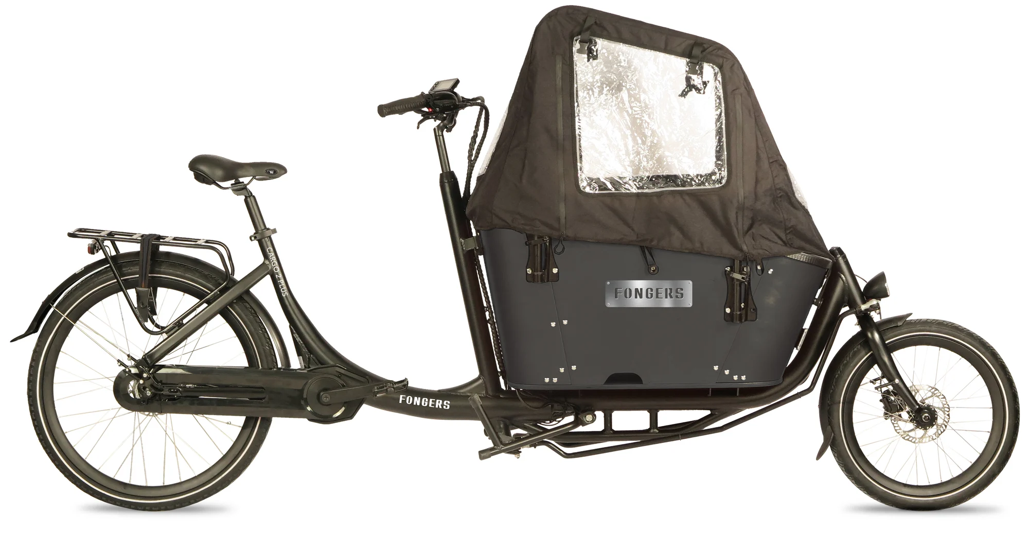 De Fongers Cargo 2 Plus 612 Wh Zwart Deluxe is één van de nieuwste bakfietsen van het merk Fongers. De Fongers Cargo 2 Plus Deluxe is een degelijke elektrische bakfiets met twee wielen, afgewerkt met hoge kwaliteit onderdelen. Deze trendy bakfiets is ideaal voor in de stad en/of voor dagelijks gebruik, inclusief huif en bakfietskussens!