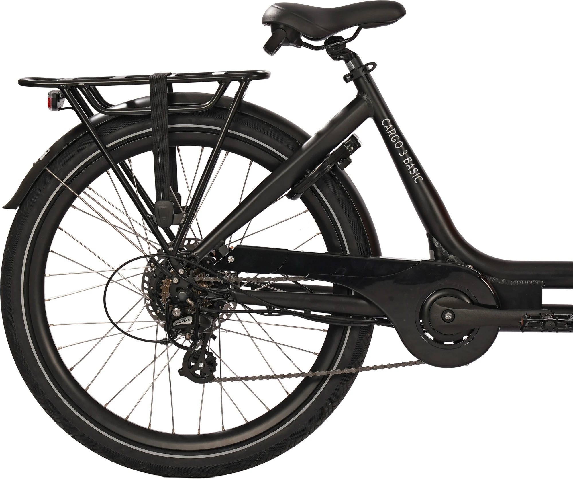 De Fongers Cargo 3 Basic 612 Wh Zwart/Bruin is voorzien van een stevig aluminium frame met een halfopen kettingkast. Hierbij zitten 7 Shimano Tourney derailleurversnellingen bevestigd, wat zorgt voor zorgeloos fietsplezier! Daarnaast is de Fongers bakfiets voorzien van een MXUS achterwielmotor, welke 45 Nm koppel levert. Dit zorgt voor een sterke ondersteuning in combinatie met 5 ondersteuningsstanden. De elektrische bakfiets is uitgerust met een 17 Ah/36 V accu voor een maximale actieradius van 70 kilometer. Daarnaast is de bakfiets voorzien van een Selle Royal gelzadel en CST anti-lek banden.