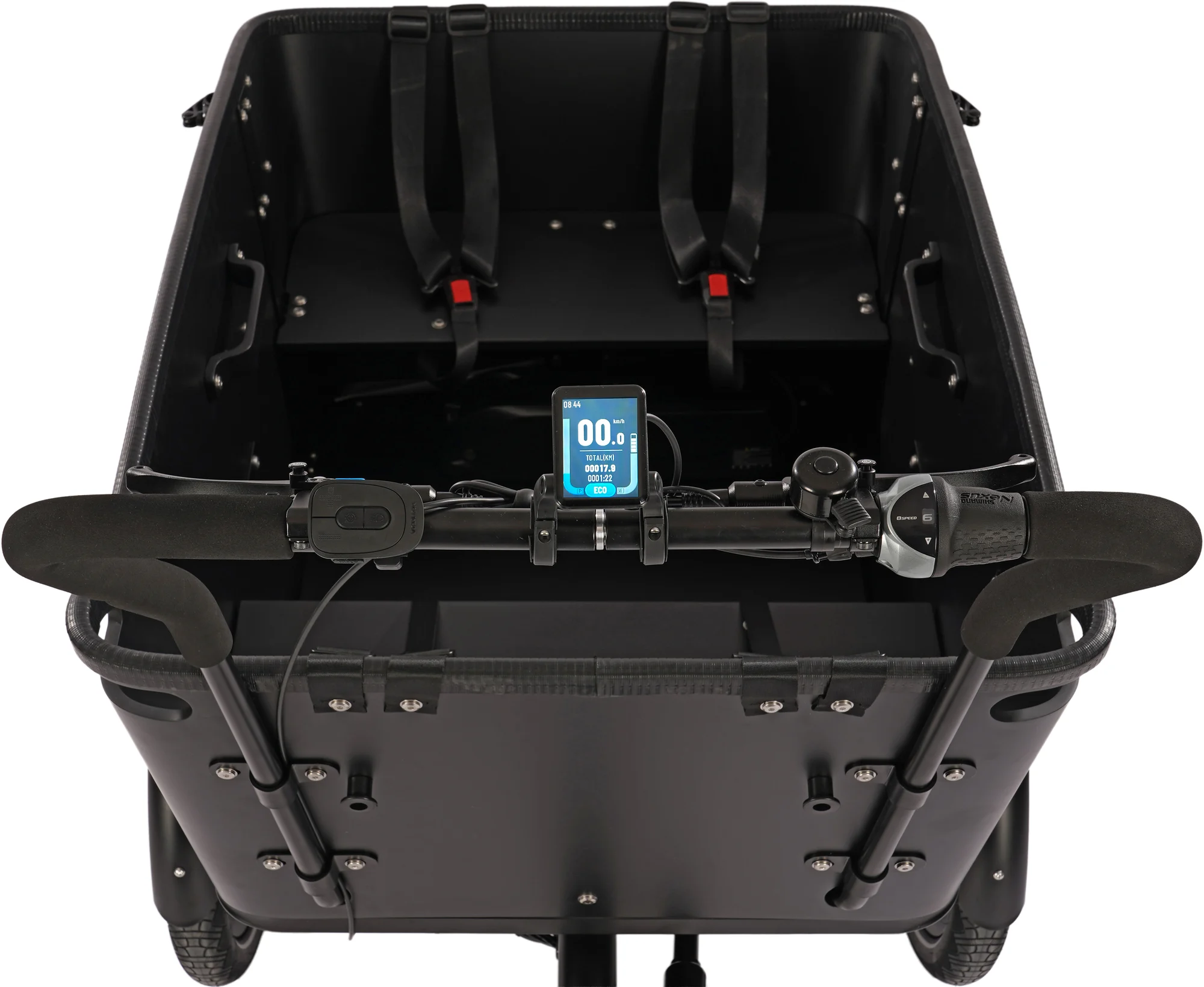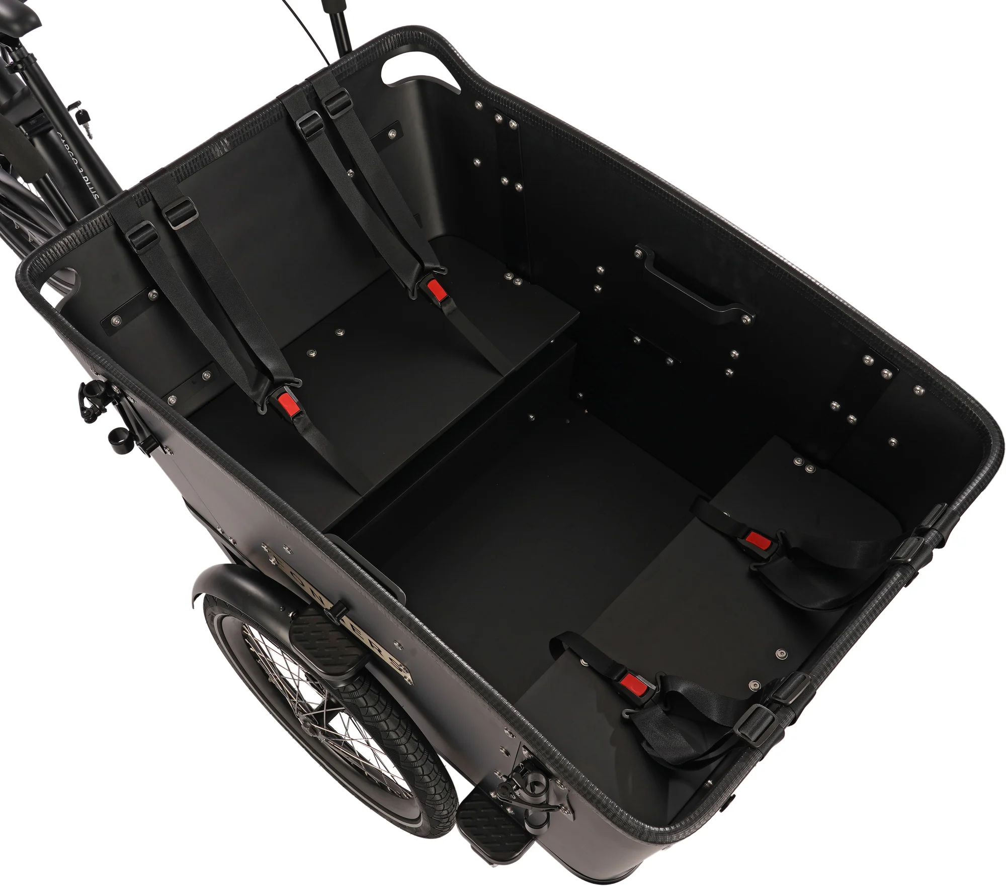 Accu weggewerkt in bak van de bakfiets