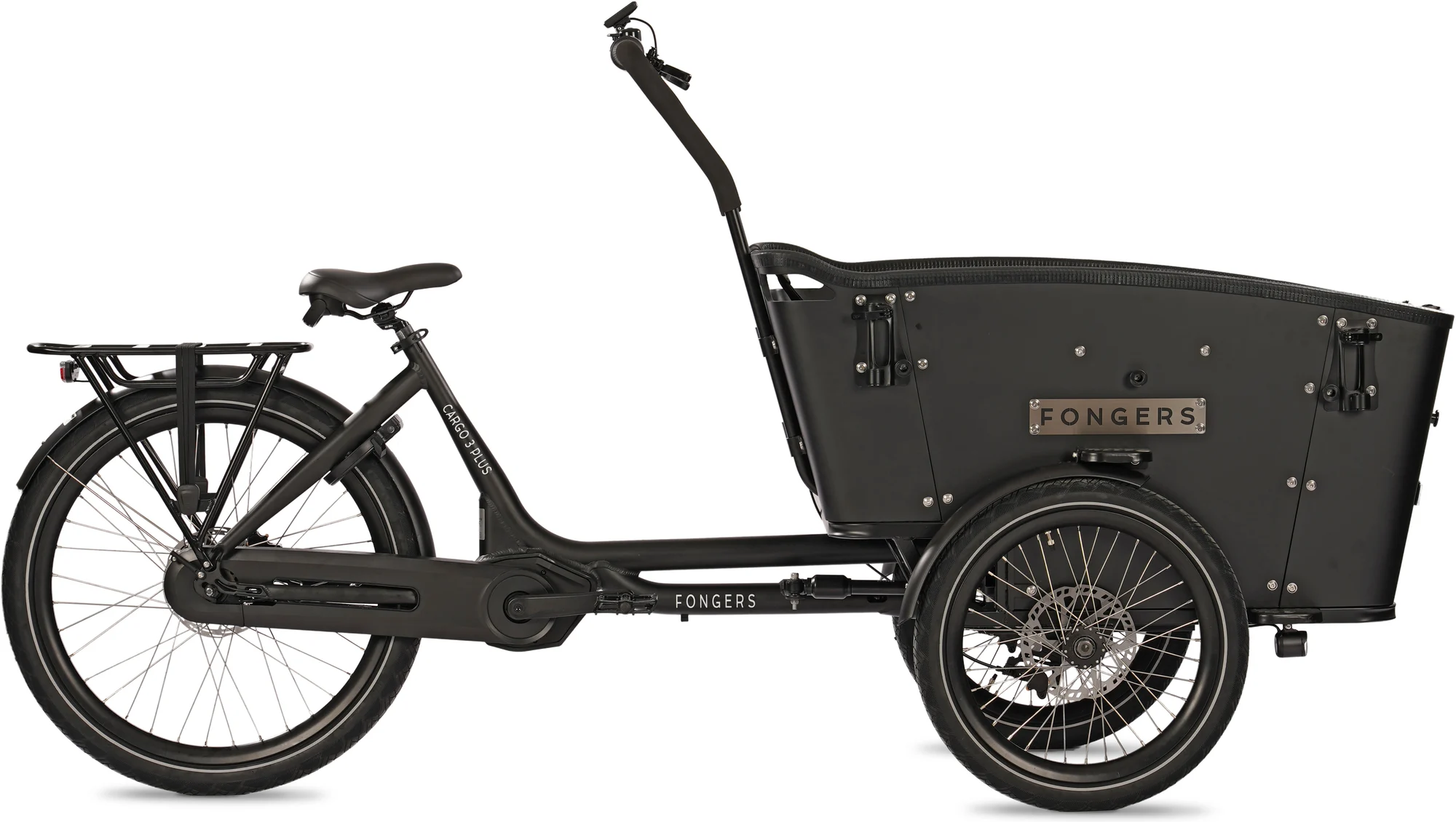 De Fongers Cargo 3 Plus 468 Wh Zwart is één van de nieuwste bakfietsen van het merk Fongers. De Fongers Cargo 3 Plus is een degelijke elektrische bakfiets met drie wielen, afgewerkt met hoge kwaliteit onderdelen. Deze trendy bakfiets is ideaal voor in de stad en/of voor dagelijks gebruik.